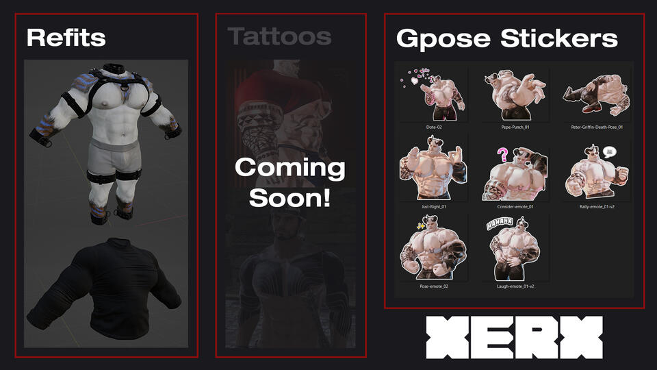 Refits ─ Tattoos (Indefinitely) ─ Gpose StickersExclusively for Roegadyn and Hrothgar only.More info about commission, status, and availability can be found on my Discord Server.*note on Tattoos: I only took comm for one of my friend's Hyur last time